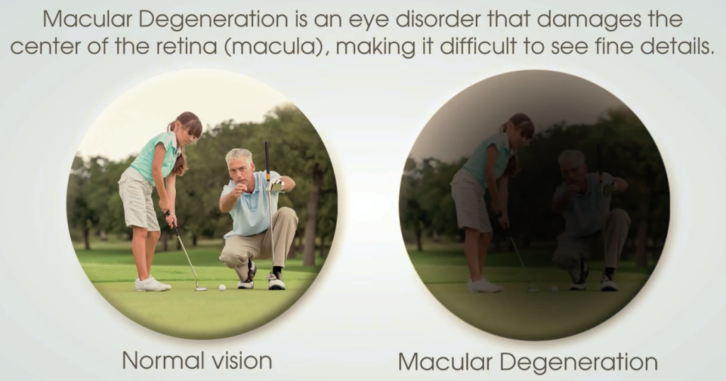 As we mentioned, most eye diseases show no signs or symptoms until they reach later stages and, unfortunately, already have done irreparable damage. The iWellness will allow us to detect diseases like glaucoma, macular degeneration and diabetes retinopathy long before the patient is even aware there’s a problem. Here are some screen shots to show what these diseases do to your vision. Trust us when we say that identifying these diseases before they show symptoms is crucial for your eyesight.